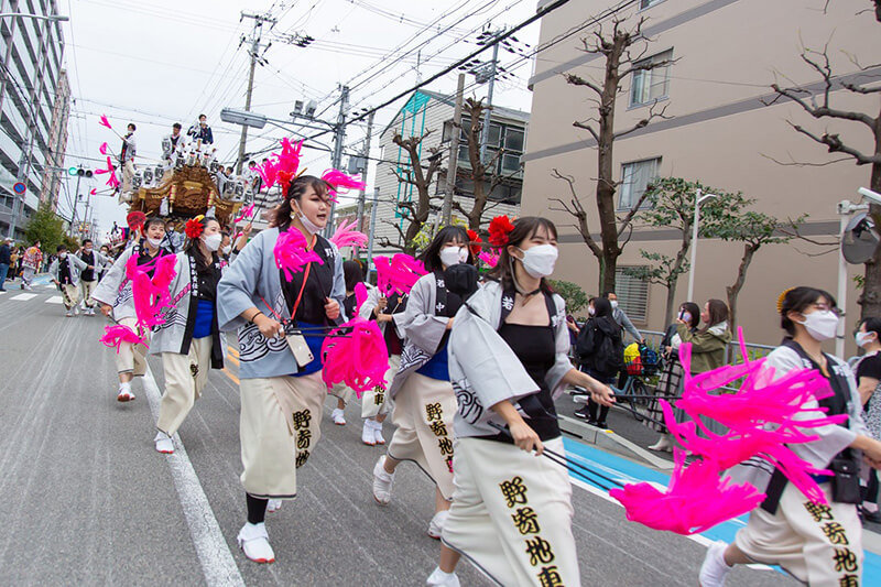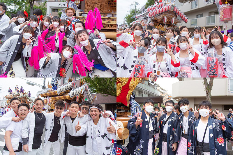 母親と一緒にだんじりに盛んに手を振っていた小学2年生の男の子は「だんじりめっちゃかっこいい! 大人になったら屋根の上のお兄さんのようになりたい。」と言い、大阪からやって来たという40代の男性は「コロナ禍で延期になり待ち遠しかったのですが、やっぱり東灘のだんじりは最高ですね。だんじりというと荒々しいイメージなのですが、場所柄もあるのかここのだんじりは上品なので安心して楽しめます。」と笑顔で話してくれました。