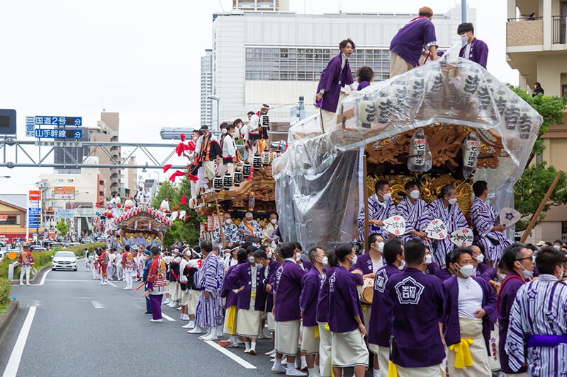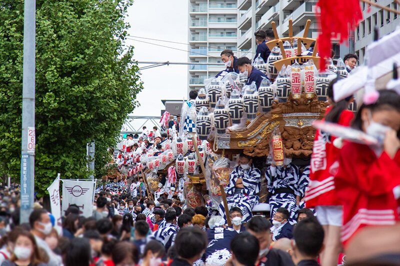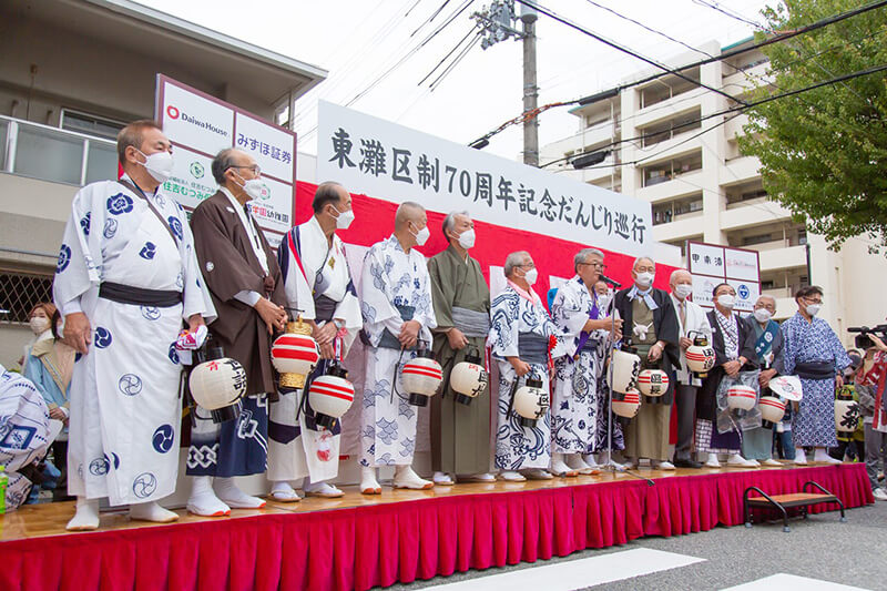兵庫県神戸市東灘区制70周年を記念し、区内の5地区32台のだんじりが一堂に集結! 新型コロナウイルス感染拡大防止のため2度の延期を余儀なくされましたが、各地区自慢のだんじりが東灘の街を巡行し、区制の節目を祝いました。
